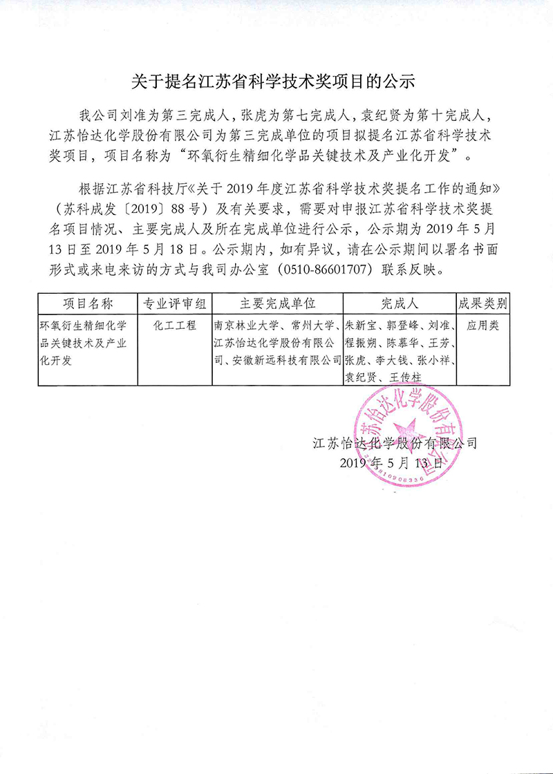 關(guān)于提名江蘇省科學(xué)技術(shù)獎(jiǎng)項(xiàng)目的公示