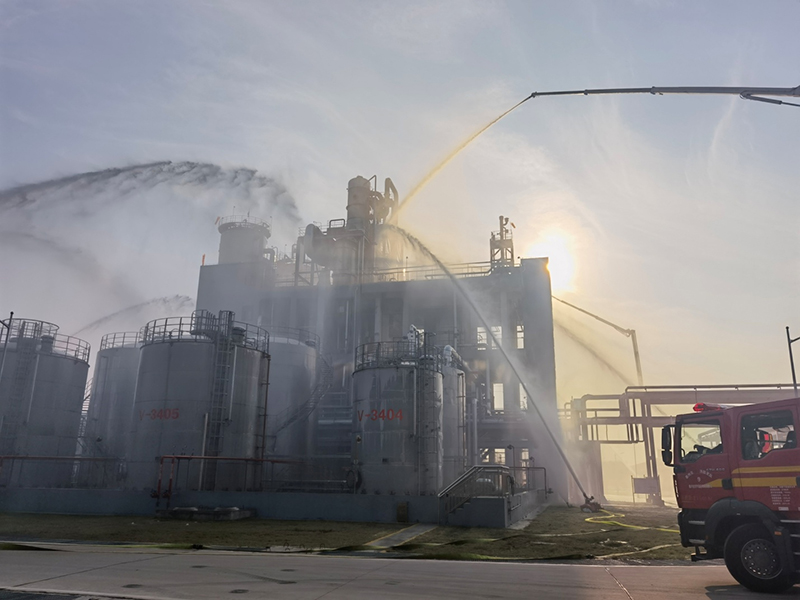 公司董事長(zhǎng)劉準(zhǔn)現(xiàn)場(chǎng)組織協(xié)調(diào),各救援人員分工明確、配合密切,全過(guò)程演示了報(bào)警接警、啟動(dòng)預(yù)案、聯(lián)動(dòng)響應(yīng)等場(chǎng)景,泰興市經(jīng)濟(jì)開發(fā)區(qū)應(yīng)急指揮中心、公安、醫(yī)療、消防、環(huán)保、電力等部門參與聯(lián)動(dòng)響應(yīng),最終成功解除所有危險(xiǎn)因素,指揮組宣布演練結(jié)束。